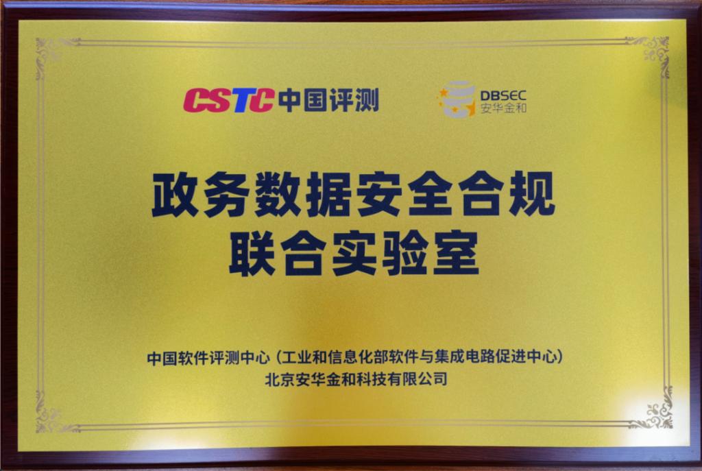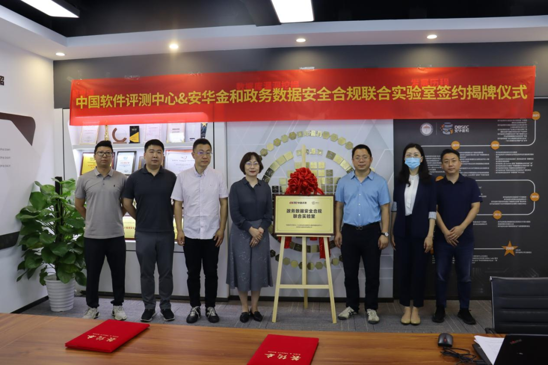 2022年7月7日上午,中国软件评测中心(以下简称中国评测)与北京安华金和科技有限公司(以下简称安华金和)联合共建的政务数据安全合规联合实验室正式揭牌成立。中国软件评测中心副主任刘龙庚、中国软件评测中心信创中心主任翟艳芬、北京安华金和科技有限公司副总裁崔媛媛、北京安华金和科技有限公司解决方案部总工程师魏力参与了揭牌仪式。
