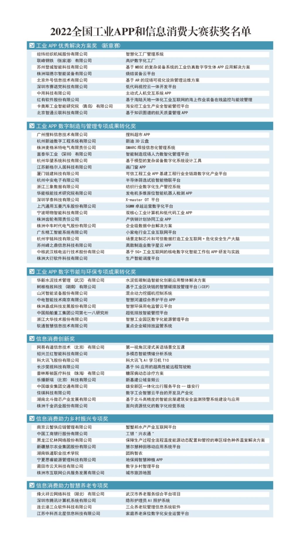 12月23日,2022全国工业APP和信息消费大赛(以下简称“大赛”)颁奖典礼暨“新生产 新消费 新经济”产业峰会在湖南株洲成功举行。