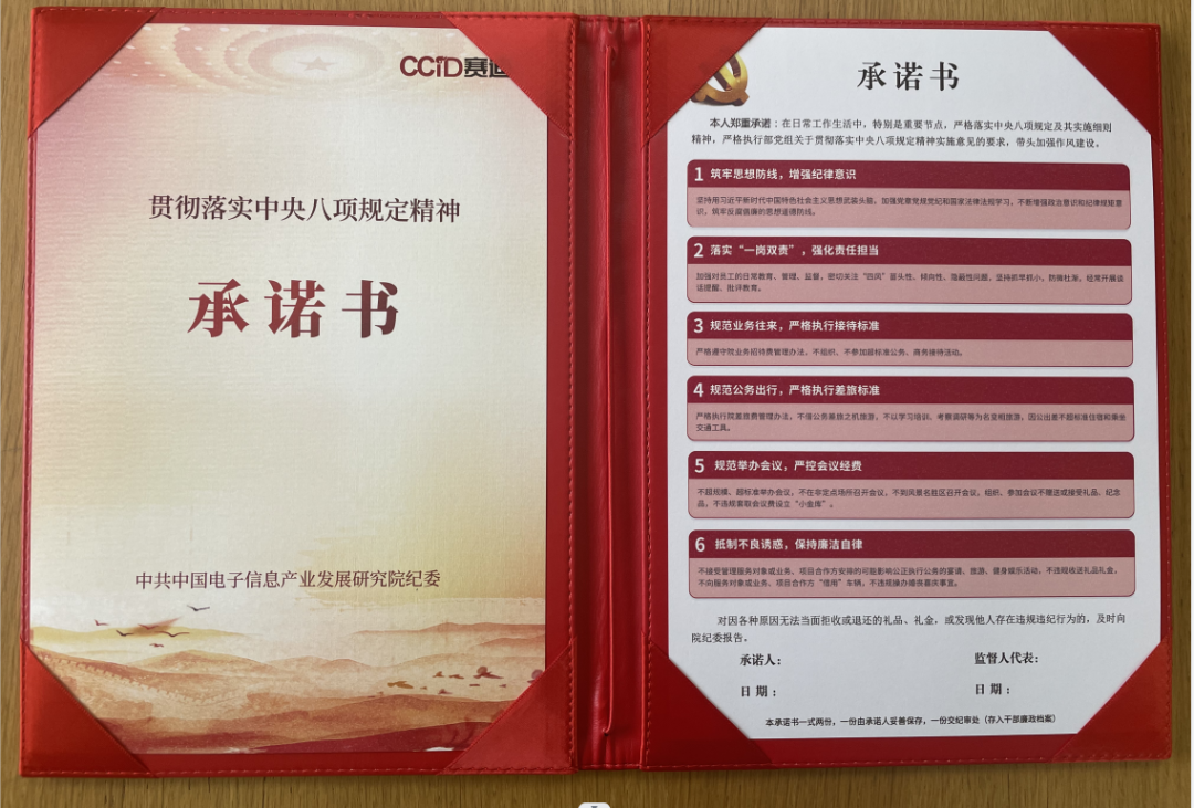 会上举行了《贯彻落实中央八项规定精神承诺书》签订仪式。院领导带头签署承诺书。
