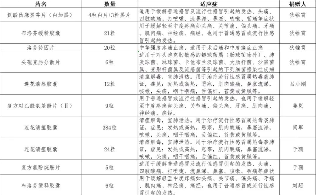 (图2 捐出药品和适应症清单)