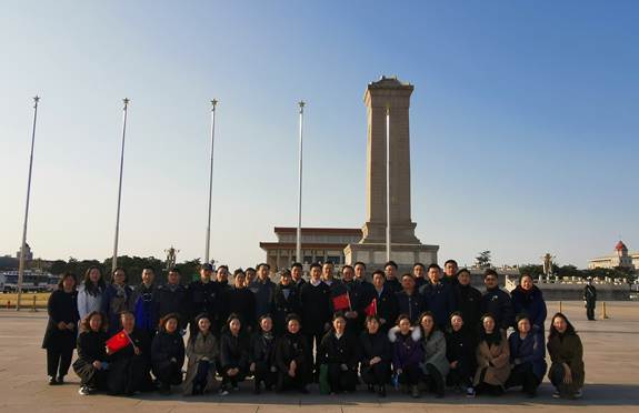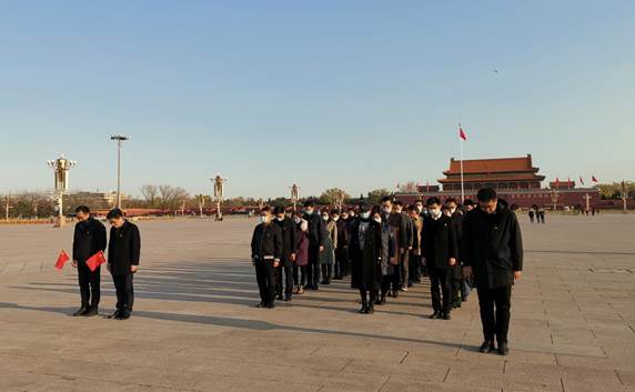 在人民英雄纪念碑前,全体党员庄严肃立,为革命英雄低头默哀追思。第五党支部党员赵振越同志带领大家进行了重温入党誓词仪式,激发了党员干部汲取红色力量、牢记初心使命的热情。